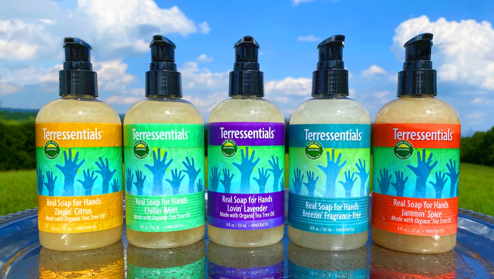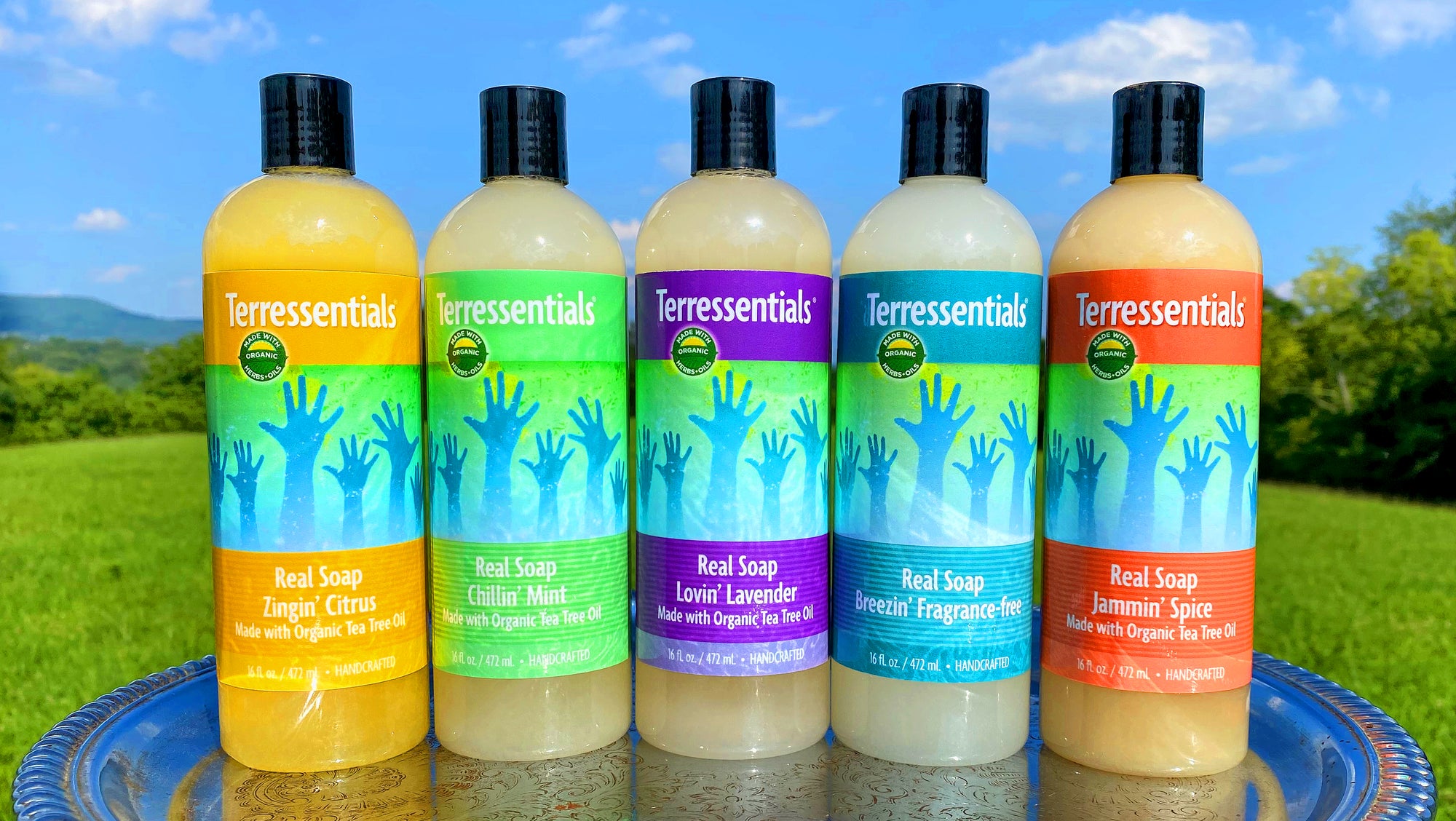 Our Terressentials organic coconut castile Real Soap is blended in small batches with soothing certified organic aloe vera juice and certified organic calendula extract. Add in lively and fun blends of certified organic essential oils, including certified organic tea tree oil, for safe and effective, environmentally-friendly hand washing and more...
